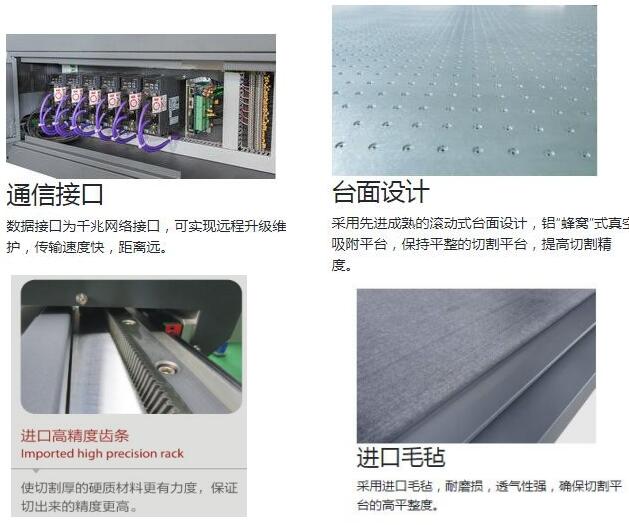 2.采用進口毛氈,耐磨損,透氣性強,確保切割平臺的高平整度;